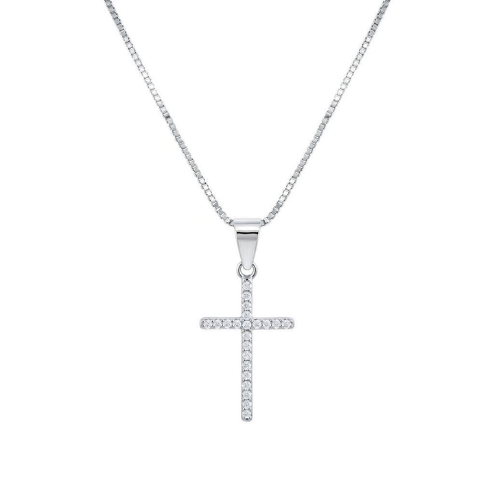 Kreuz-Anhänger mit Zirkonia & Venezianerkette – Silber, rhodiniert