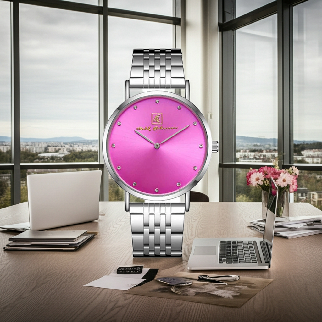 - Magenta- Ziffernblatt mit Straßsteinen