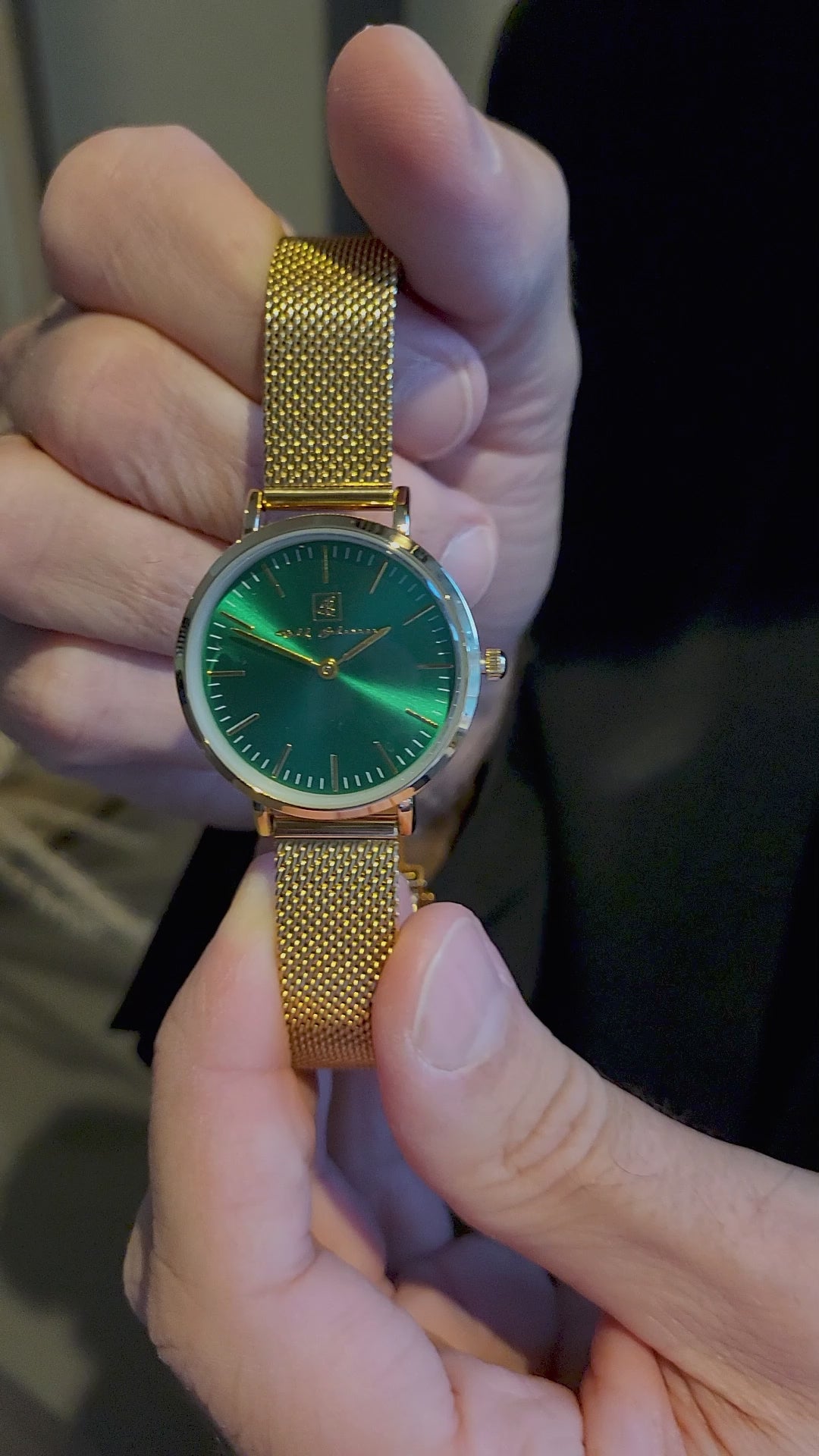 Mit dieser Damenuhr in Gold mit Milanese Armband und grünem Ziffernblatt setzen Sie ein modisches Statement. Das grüne Zifferblatt verleiht der Uhr einen frischen, farblichen Akzent, der perfekt zum schimmernden Gold des Armbands harmoniert. Ausgestattet mit einem zuverlässigen Quarzwerk und robusten Materialien, vereint die Uhr Stil und Funktionalität in einem eleganten Design. Ob im Büro oder beim Abendessen – diese Uhr ist ein zeitloser Begleiter, der jede Garderobe aufwertet.