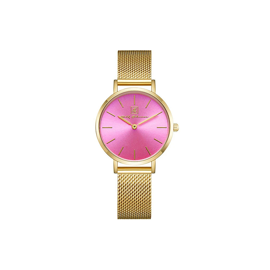 Stivolle Damenuhr in Gold mit Milanese Armband und pinkem Ziffernblatt “Leipzig”