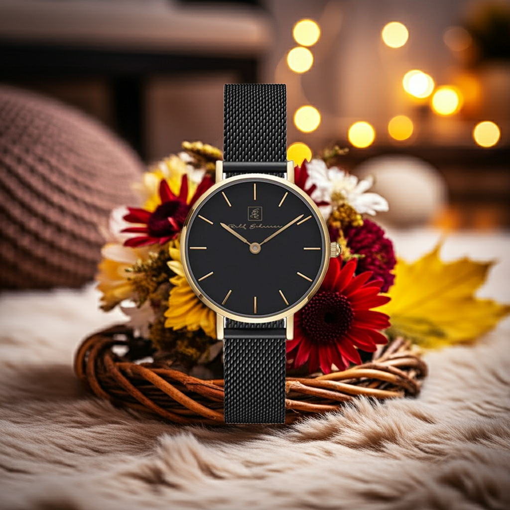 Die Damenuhr in schwarz Milanese rund besticht durch ihr minimalistisches Design und die klassische Form. Das feingliedrige Milaneseband in elegantem Schwarz verleiht der Uhr eine moderne und zugleich zeitlose Optik. Mit ihrem runden Gehäuse fügt sich die Uhr harmonisch an das Handgelenk und bietet eine klare, stilvolle Erscheinung, die zu jedem Outfit passt. Das schwarze Ziffernblatt unterstreicht den monochromen Look und sorgt für ein edles, reduziertes Design, das sowohl im Alltag als auch bei besonderen Anlässen überzeugt.
