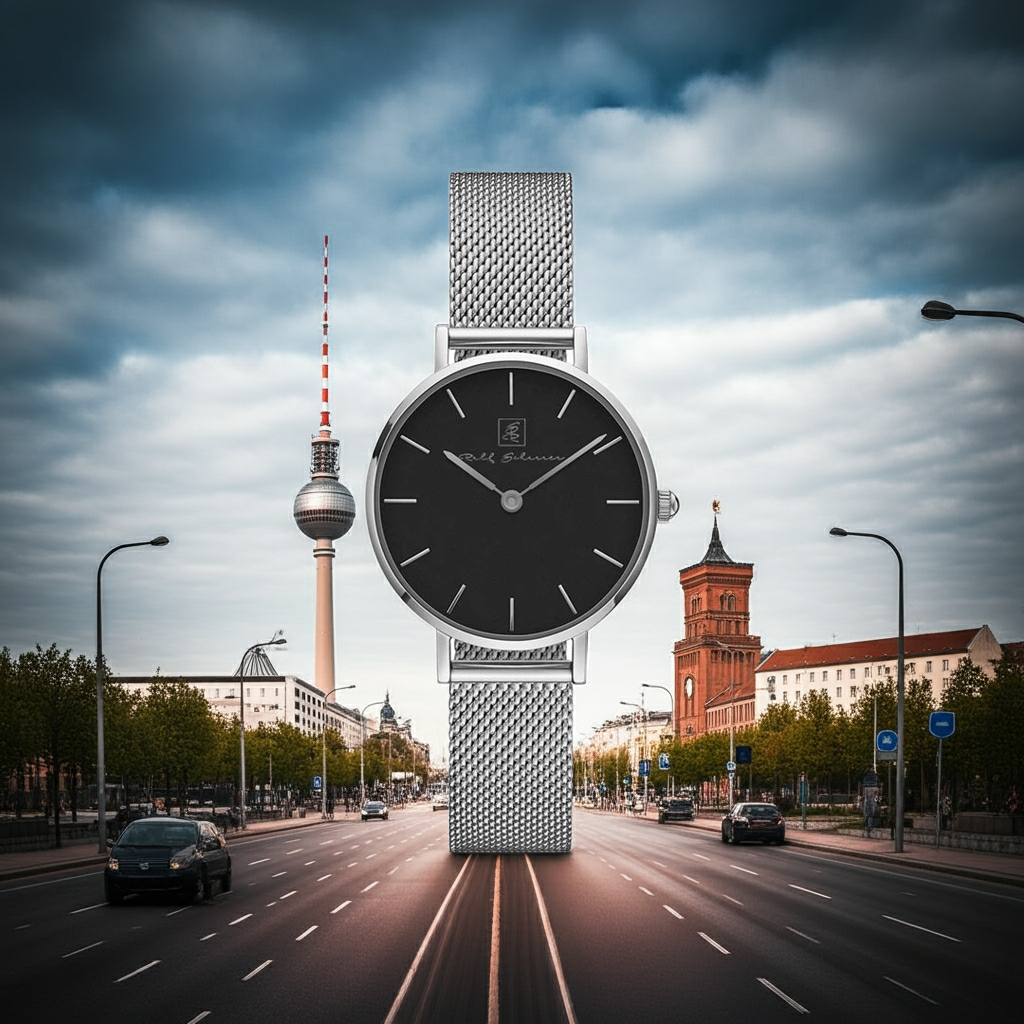 Minimalismus- genau mein Stil! Damenuhr Milanese silber mit schwarzem Ziffernblatt “Berlin”