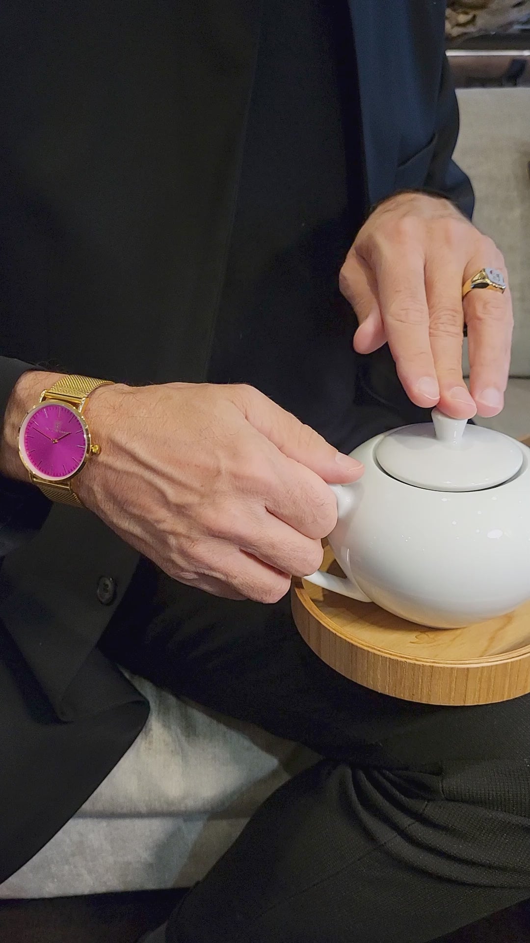 Dein Look- Upgrade! "Wiesbaden" 40 mm in Goldfarben und pinkem Ziffernblatt