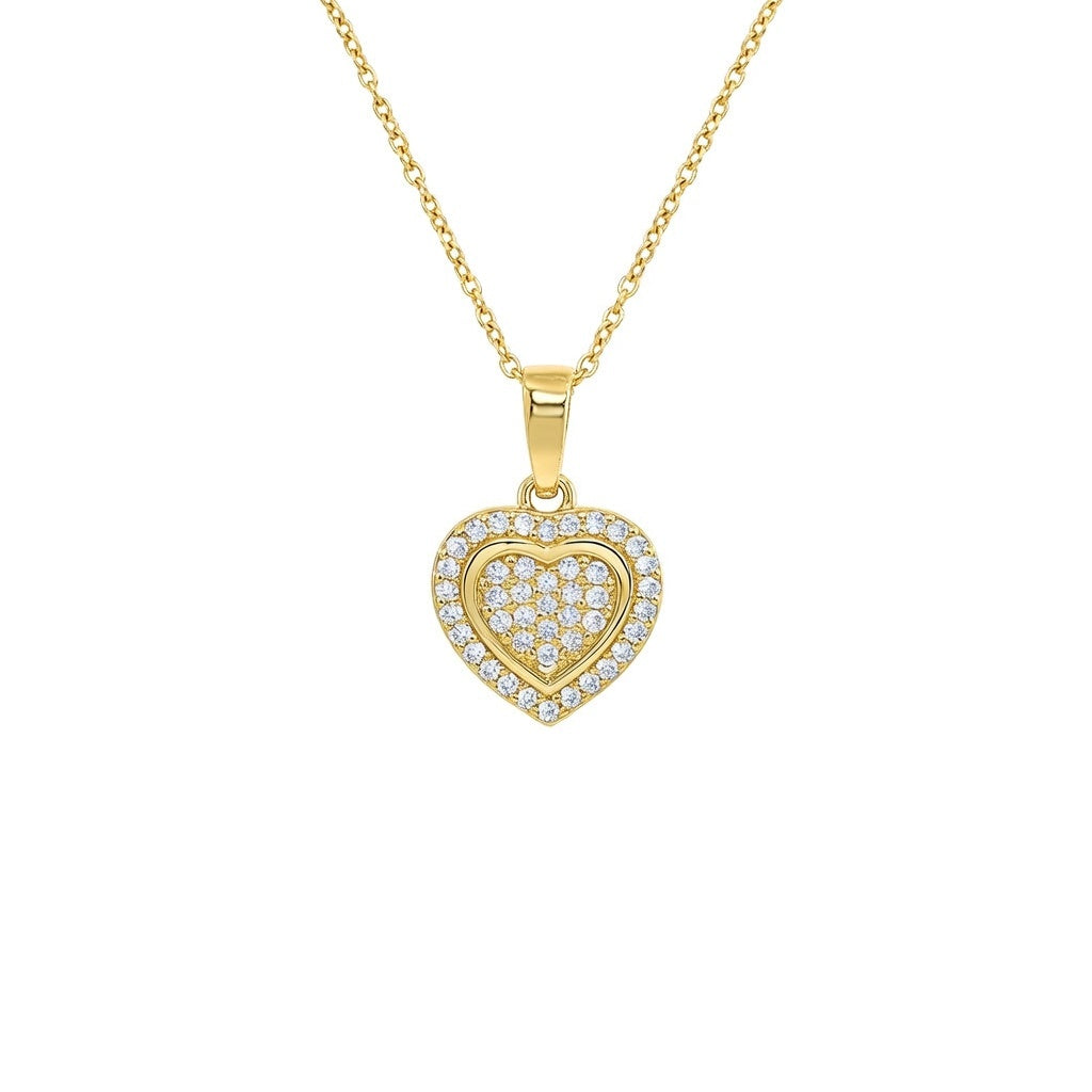 Exquisiter Herz Anhängerin Silber mit Ankerkette – Gelbvergoldet & funkelnde Zirkonia
