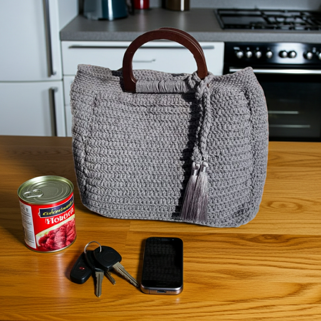 Ralf Scharrer meets Cemile Tiryaki - Unikat "Hanna- Handbag" gehäkelt, Farbe Grau