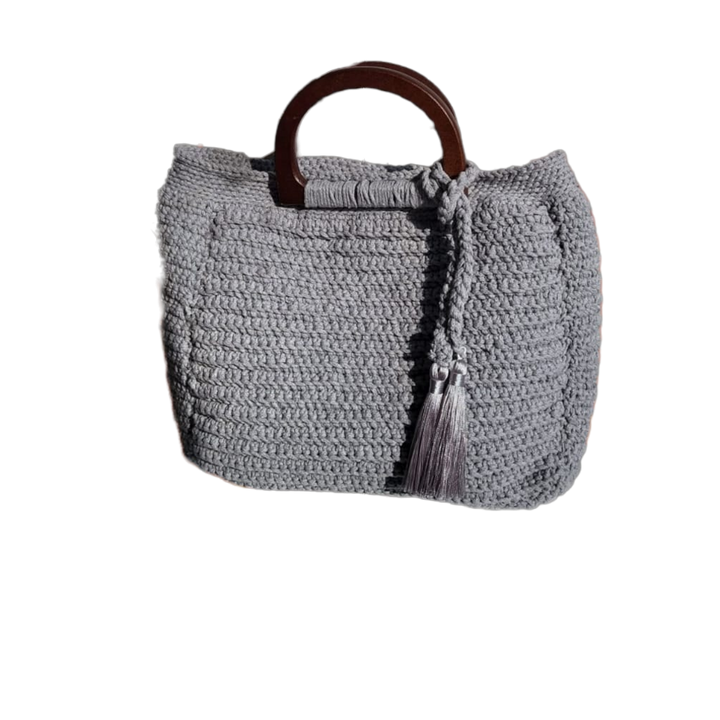 Diese stilvolle Handmade Bag vereint natürliche Materialien mit einzigartigem Design. Gefertigt aus hochwertiger Baumwolle und versehen mit einem edlen, ergonomischen Holzgriff, setzt sie ein klares Statement für nachhaltige Mode mit Anspruch. Die feine gehäkelte Struktur in modernem Gold-Beige verleiht der Tasche zeitlose Eleganz, während die dekorativen Details handwerkliche Kunst perfekt widerspiegeln.