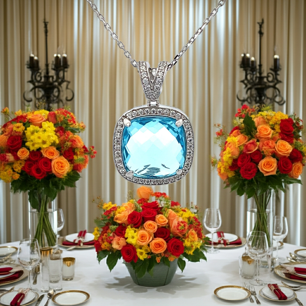 Funkelnde Zirkonia in Blau und Weiß
