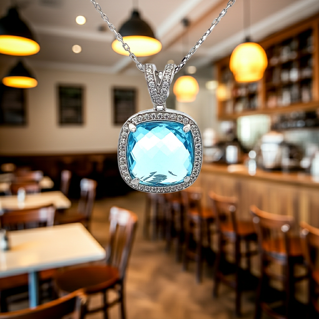 Ralf Scharrer meets Vinczena! exklusiver Anhänger/ Ankerkette mit hellblauem Zirkonia-Stein 925 Silber rhodiniert oder gelbvergoldet