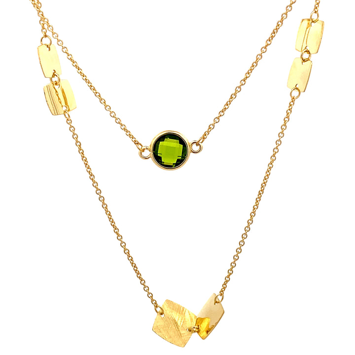 Elegantes Collier mit grünem Peridot – 925 Silber, Gelbvergoldet, 88 cm