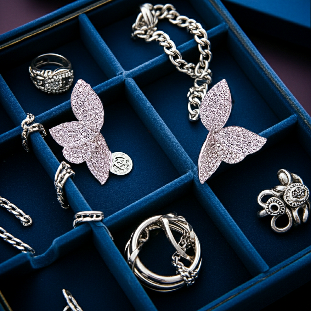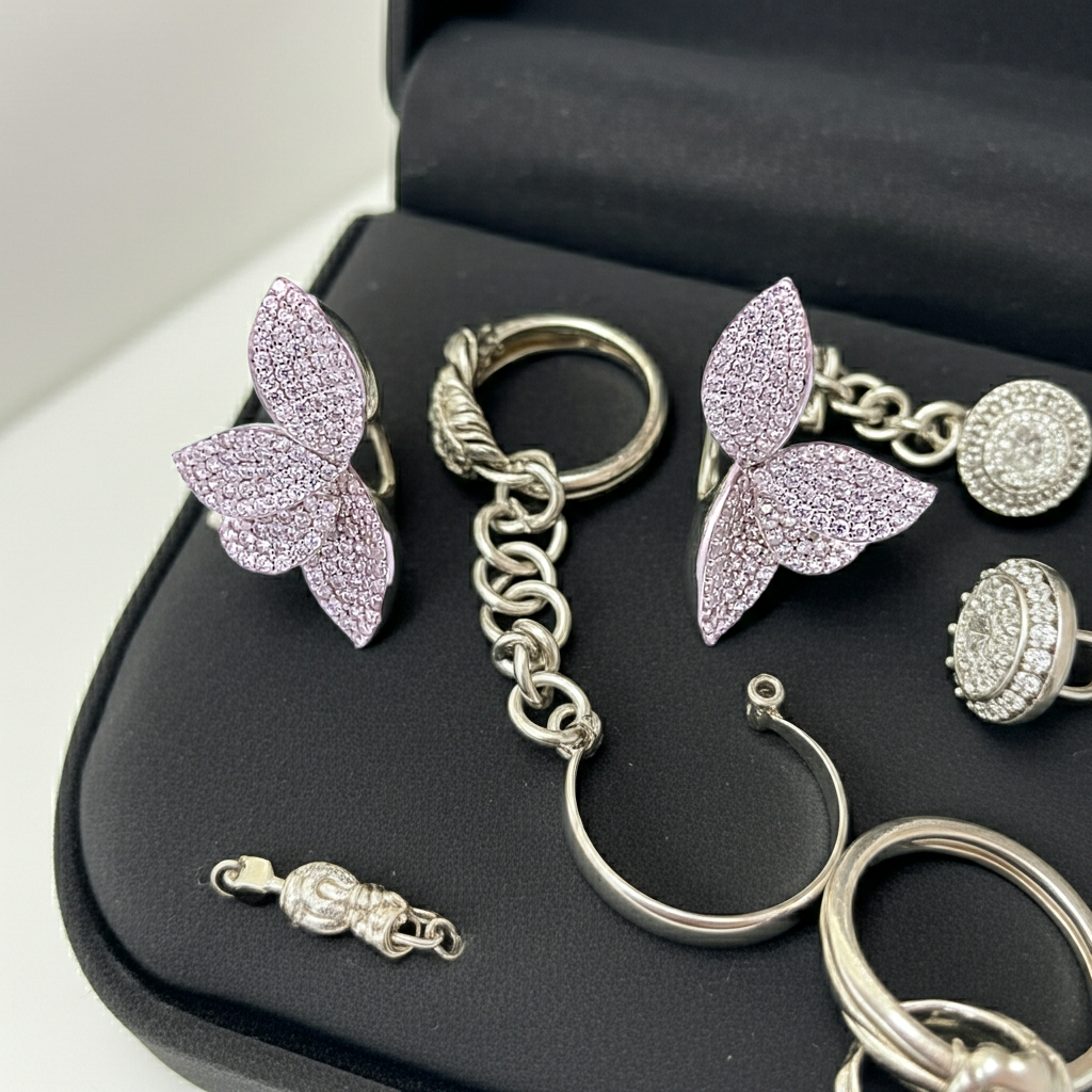Design: Blättermotiv mit weißen Zirkonia-Steinen