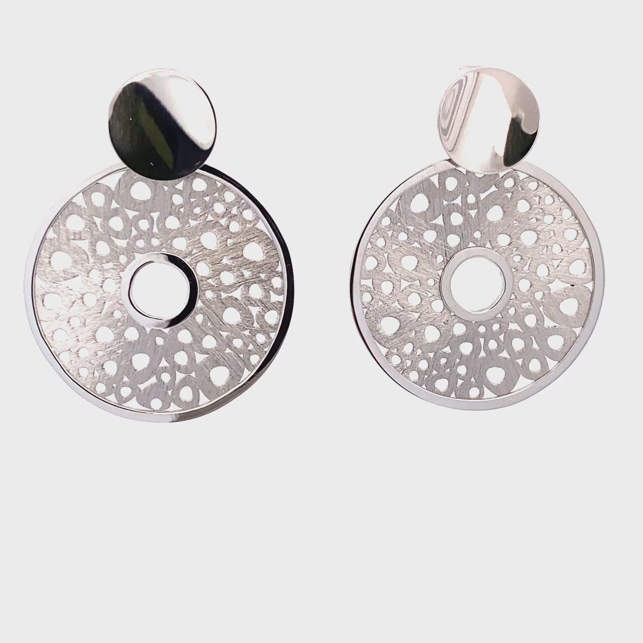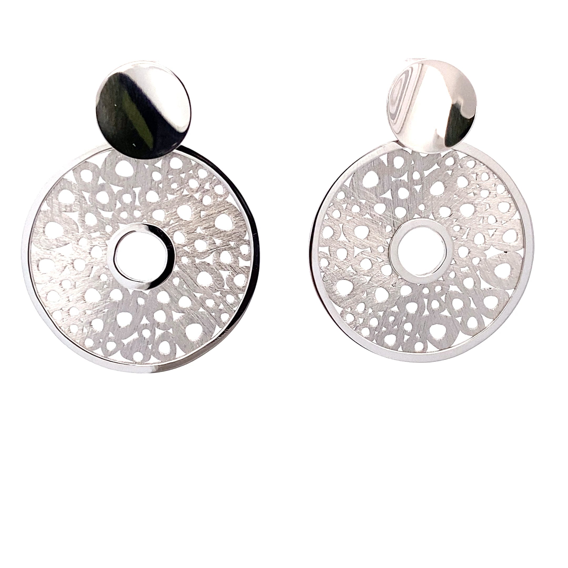 Silber- Ohranhänger rund mit filigranem Lochmuster