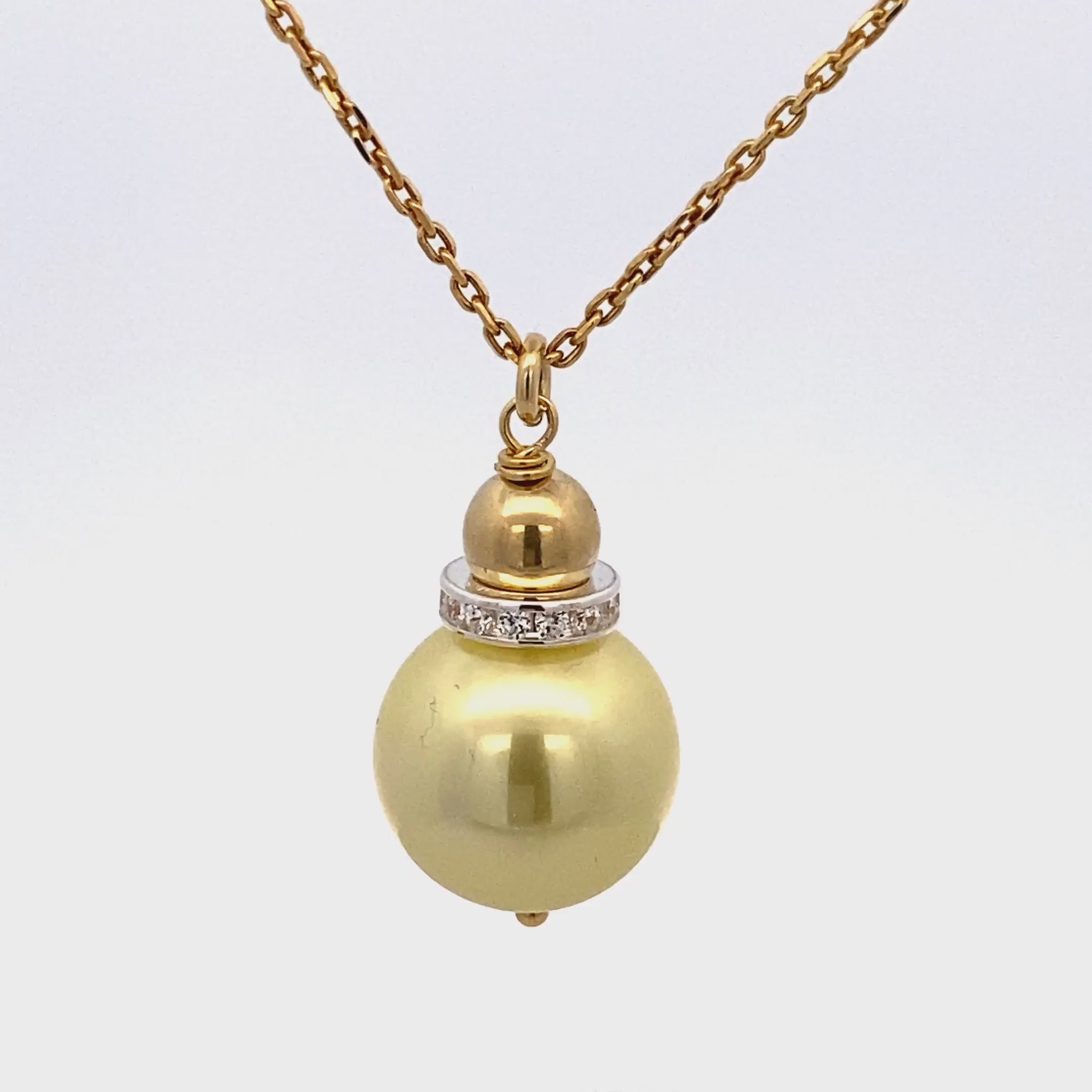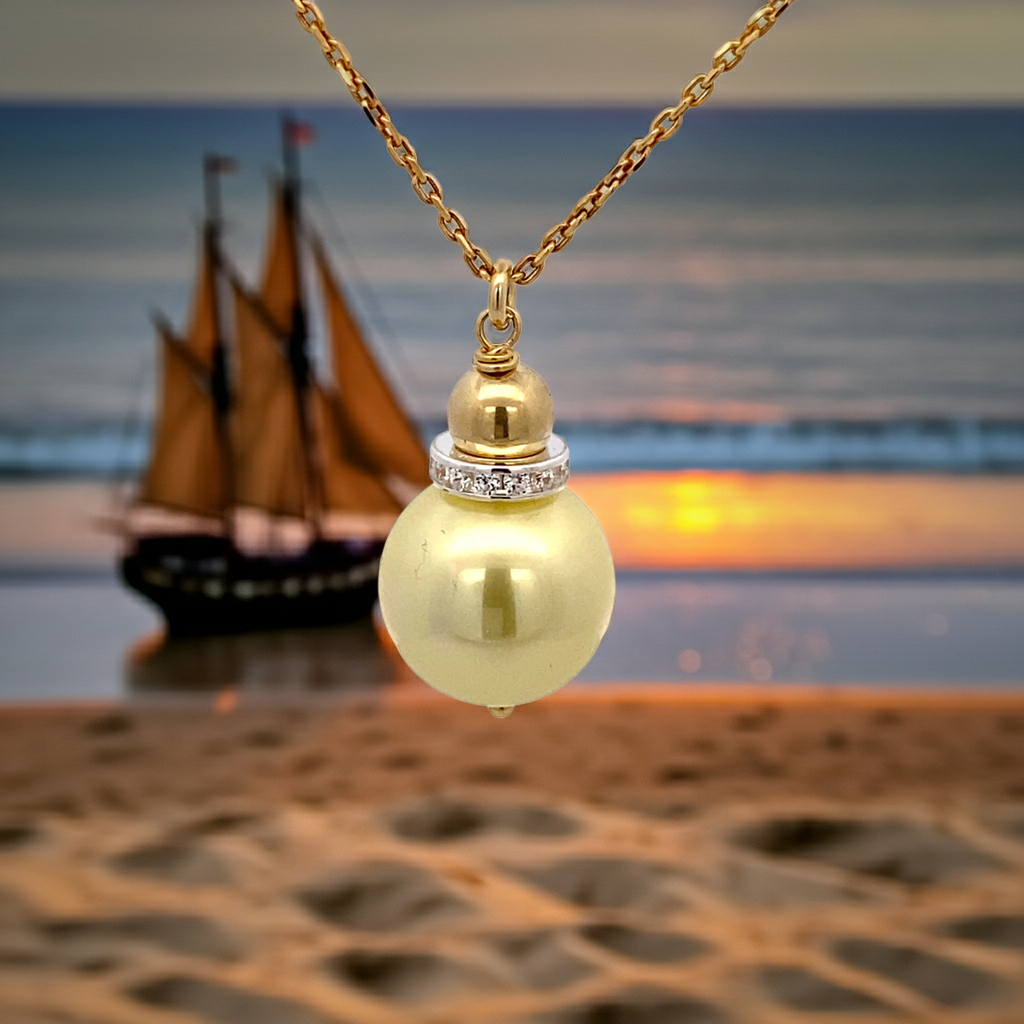 Polierte Kugel, weißer Zirkonia-Stein & gelb schimmernde Muschelperle