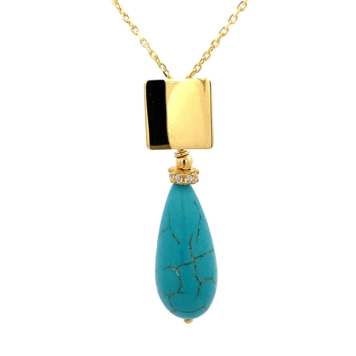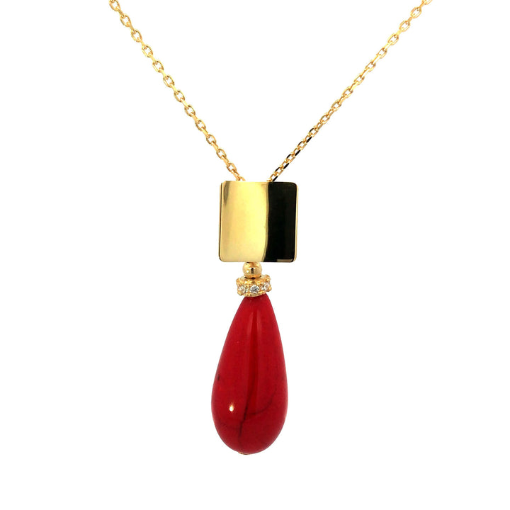 Ein eleganter Blickfang für jedes Outfit: Der ikonische Anhänger in Tropfenform vereint modernes Design mit zeitloser Eleganz. Der tropfenförmige Anhänger ist in Rot oder Türkis erhältlich und besticht durch seine eckig polierte Tropfen- Form sowie eine edle 925 Silber- Gelbvergoldung. Ein funkelnder Zirkonia-Stein in der jeweiligen Farbe setzt glamouröse Akzente und unterstreicht den hochwertigen Look.