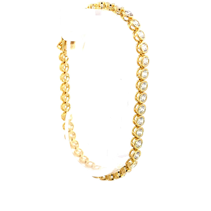 Edles Tennisarmband für Damen, 18 cm lang, 3 mm breit, besetzt mit funkelnden Centerstones. Wählbar in 925 Silber Gelbvergoldung oder Rhodinierung, mit sicherem Kastenverschluss – stilvoller Begleiter für jeden Anlass. Dieses Tennisarmband für Damen ist ein zeitlos elegantes Schmuckstück, das durch zahlreiche runde Centerstones seinen besonderen Glanz erhält. Das Armband ist 18 cm lang und 3 mm breit und passt sich perfekt dem Handgelenk an. Dank sicherem Kastenverschluss bleibt es zuverlässig verschlossen.