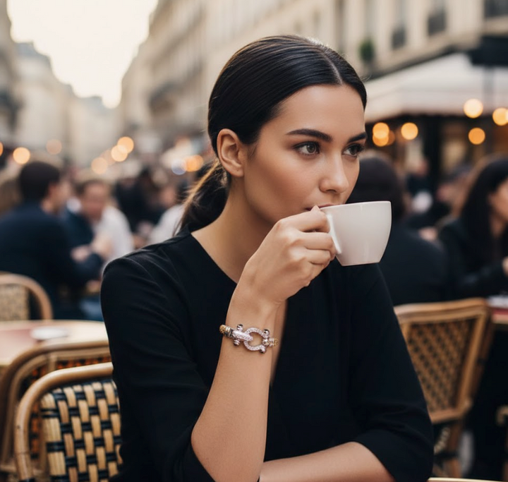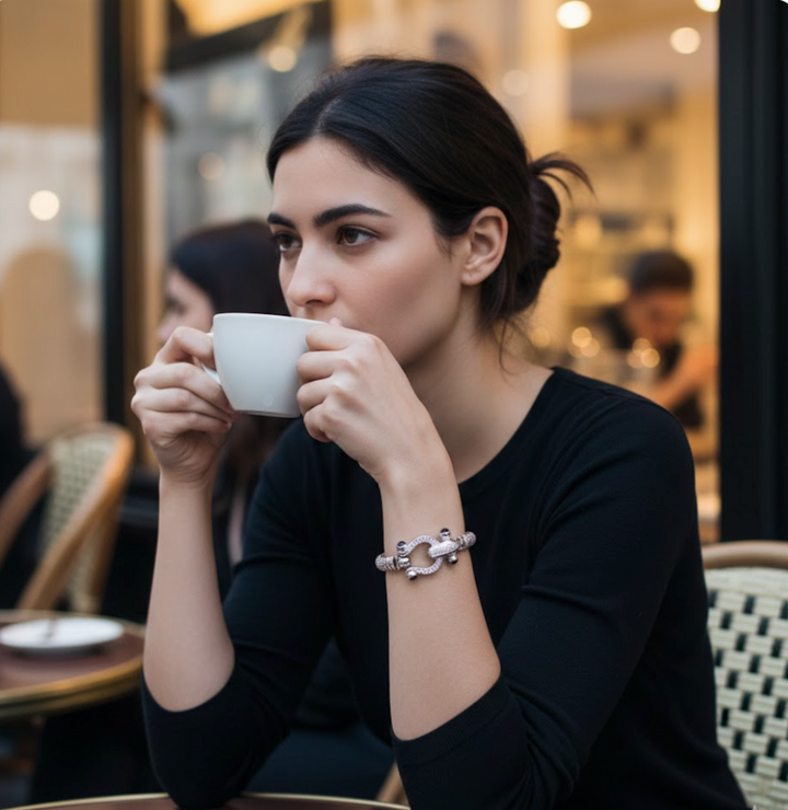 Dieser exklusive Damenarmreif im Steigbügel-Design vereint Eleganz und modernen Luxus in einem Schmuckstück. Wähle zwischen 925 Silber, rhodinierter oder gelbvergoldeter Ausführung und setze ein Highlight, das zu jedem Outfit passt. Funkelnde Zirkonia-Steine in edler Onyx-Farbe verleihen dem Armreif eine elegante Tiefe und machen ihn zu einem echten Blickfang. Mit einem Außendurchmesser von 65 mm und einer variablen Breite von 6 bis 17 mm schmiegt er sich perfekt ans Handgelenk an. Die hochwertige Klappschließe sorgt für sicheren Halt und ein komfortables Tragegefühl. Ob im Alltag, im Büro oder zu festlichen Anlässen – dieser Armreif ist das ideale Accessoire für stilbewusste Frauen. Er lässt sich wunderbar mit anderen Schmuckstücken kombinieren und setzt ein modisches Statement. Durch die edle Verarbeitung ist er auch die perfekte Geschenkidee für besondere Anlässe. Das Steigbügel-Motiv verleiht dem Schmuckstück eine markante und zugleich zeitlose Note. Entdecke einen luxuriösen Damenarmreif, der Qualität, Stil und Eleganz perfekt miteinander verbindet.