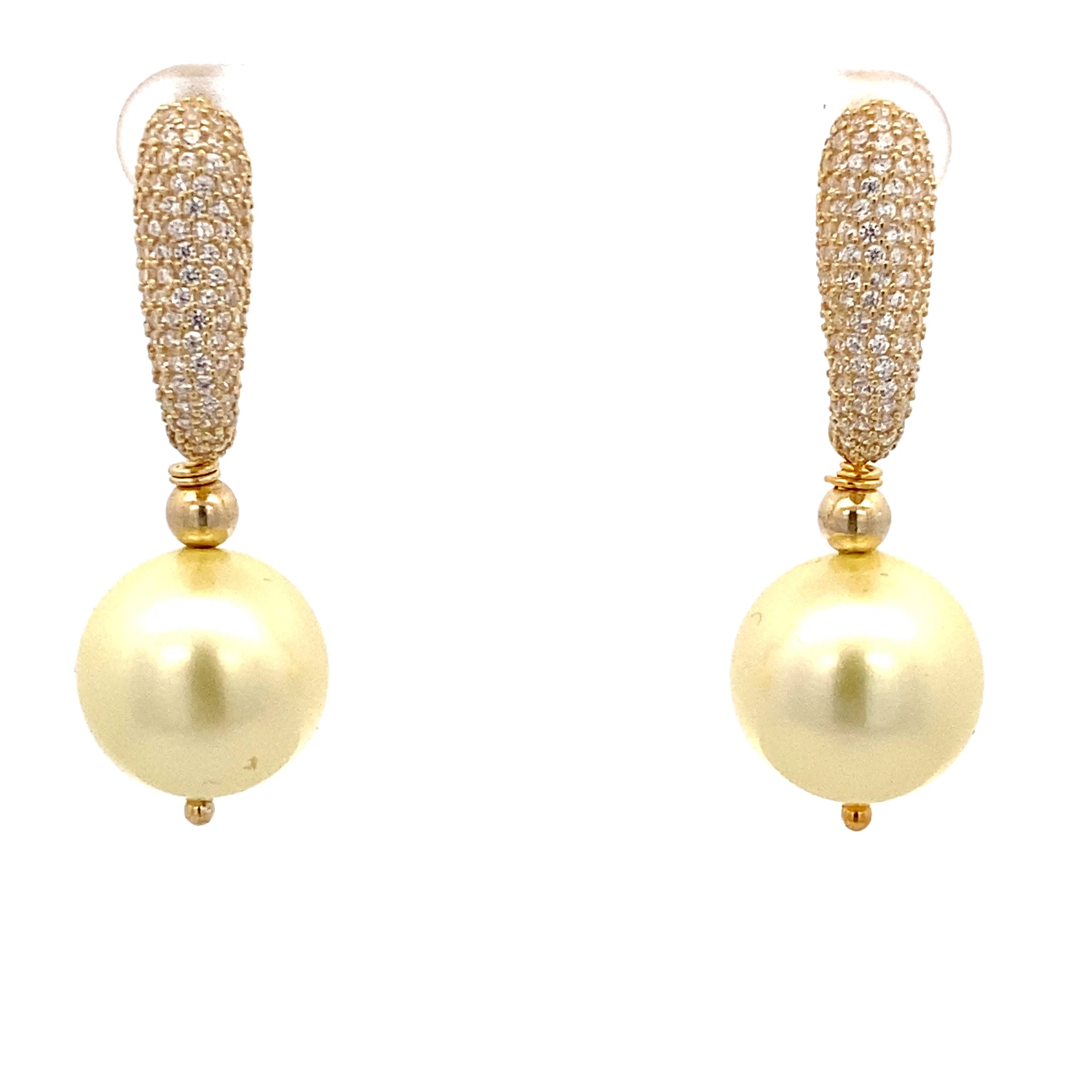 Steine: Weißer Zirkonia-Stein, Muschelperle in Gelb