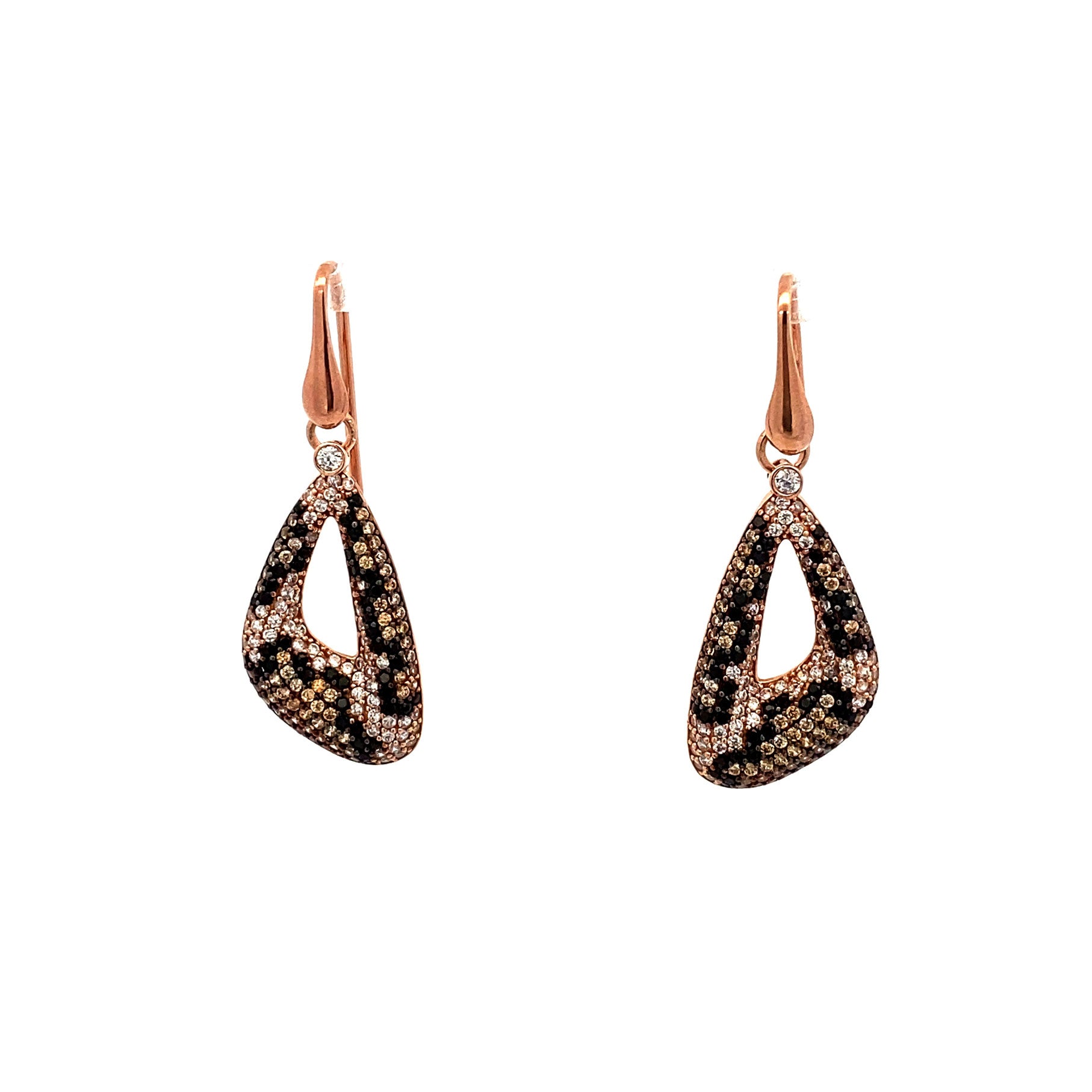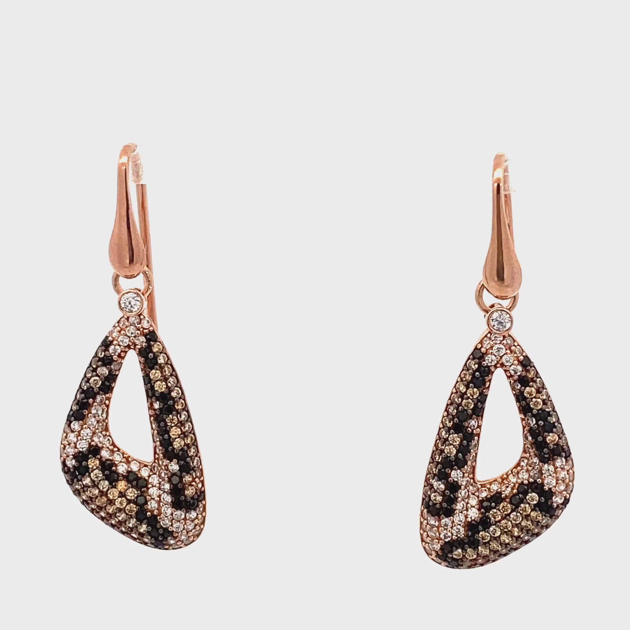 Verleihe deinem Look luxuriösen Glanz: Die eleganten Ohranhänger "Triangel Leo" überzeugen mit einem modernen Design in 925 Silber, rosevergoldetem Edelstahl. Funkelnde Zirkonia-Steine in Weiß, Schwarz und Champagner setzen edle Akzente und machen dieses Schmuckstück zum stilvollen Blickfang.