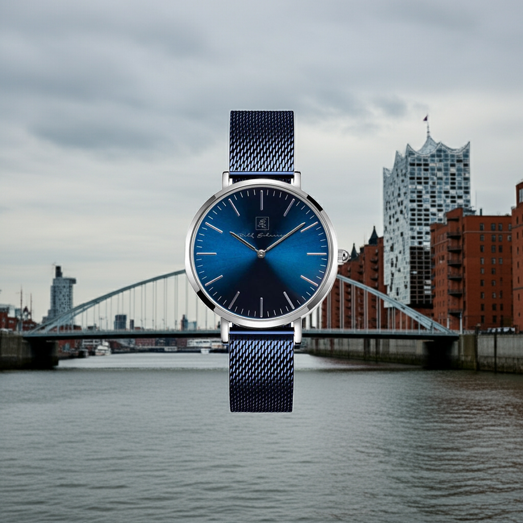Der Magnet für Komplimente! Armbanduhr “Hamburg” 32 mm / 40 mm mit blauem Armband und blauem Ziffernblatt